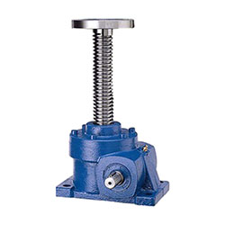 螺旋升降機由蝸輪、箱體、軸承、絲杠等部件組成。其工作原理是:電機或手動帶動蝸桿旋轉,蝸桿帶動蝸輪減速旋轉,蝸輪內腔加工成內螺紋,傳動螺桿上下移動。由于內有蝸輪蝸桿,螺桿的減速作用會增大推