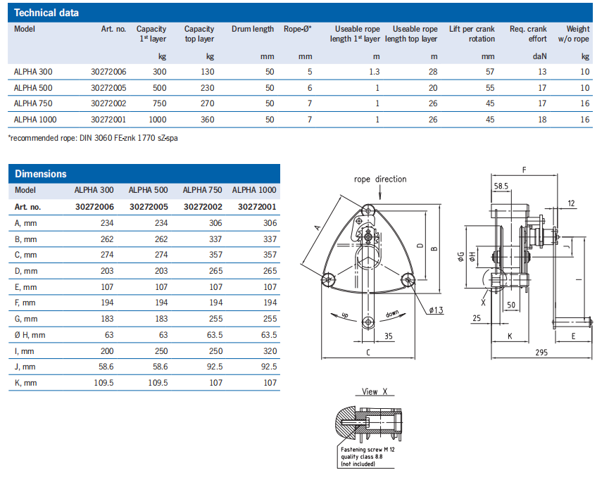 SW-W ALPHA 是用于提升的多功能壁掛式鋼絲繩絞車負(fù)荷。