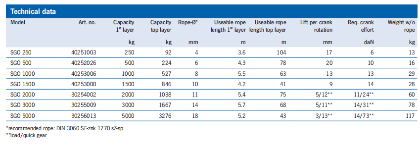 繩索絞車 SW-W-SGO 帶蝸桿齒輪作為壁絞車,用于提升降入差異載荷類。負(fù)載壓力制動器確保提升負(fù)載的安全穩(wěn)定性。
