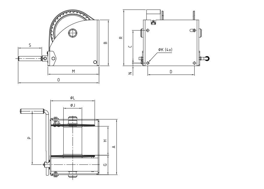壁掛鋼絲繩絞車 SW-W-SGO 帶蠕蟲齒輪